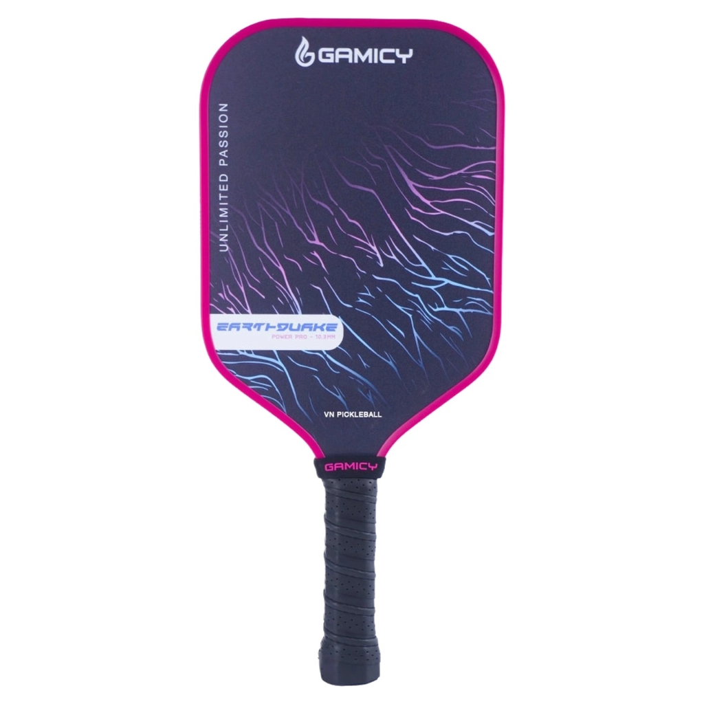 - Vợt Pickleball Gamicy Earthquake Pro 14mm tượng trưng cho sức mạnh vô biên của đất mẹ, nguồn năng lượng dồi dào mà thiên nhiên ban tặng. EARTHQUAKE như truyền tải sức mạnh của những cơn động đất, làm rung chuyển sân đấu và mang lại cho người chơi cảm giác mạnh mẽ và tự tin. Gamicy Earthquake Pro 14mm có 3 phiên bản màu sắc nổi bật, tha hồ để các bạn lựa chọn.
